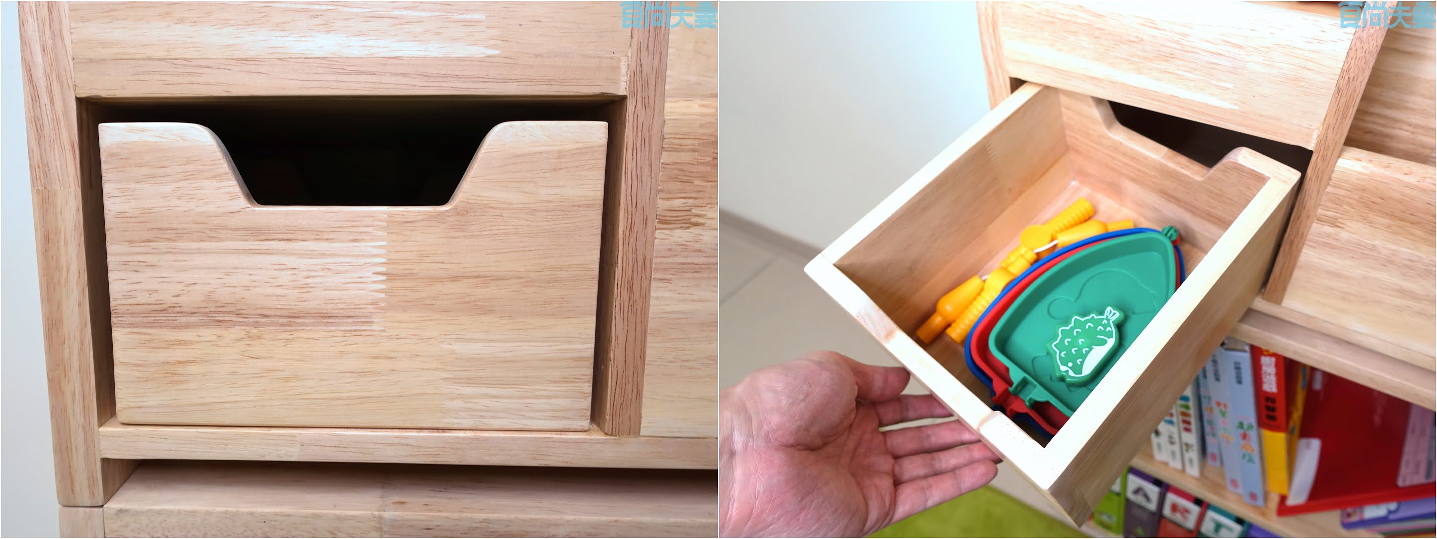 小朋友難免會跑來跑去,或動作較大磨到撞到家具,所以我特別重視家具的邊邊角角有沒有磨掉、磨圓,而環安兒童家具專為兒童設計,所以也留意這些安全細節,邊邊角角都有磨過喔!