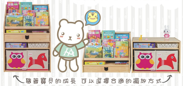 ※之前出的【多功能展示書櫃&收納櫃】收納空間較大(下圖,上下層可分開),但需要大人陪同拿取,或者就先不要疊起來使用,孩子就可以自己拿。