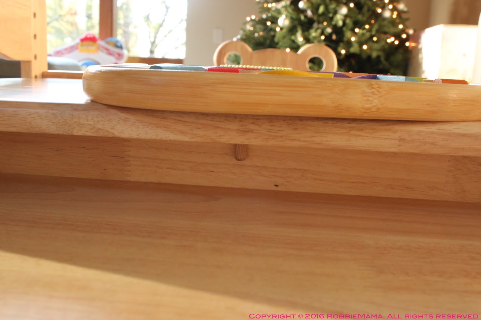 雖然前方的桌緣有加高設計,但是左右兩側卻沒有,一開始我心想這樣豈不是要一天到晚幫小孩撿筆了?(驚)