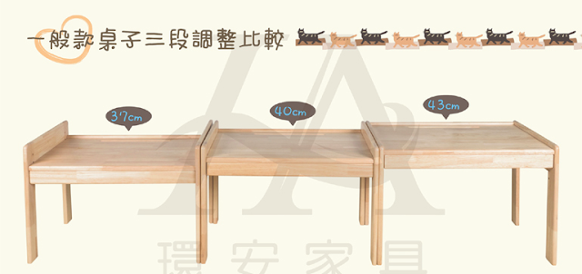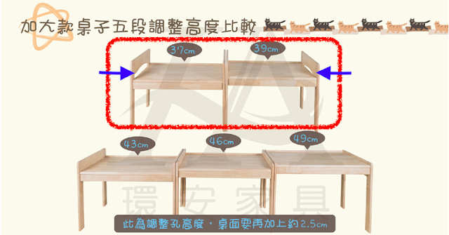 其實這是加大款和一般款的桌子,除了高度之外另外一個設計上的差異
