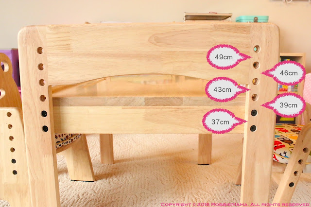4歲半的Robbie目前身高105cm,我將桌椅調到最高的高度都還稍嫌太高了一咪咪
