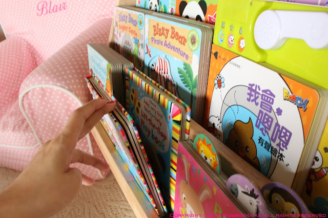 展示型的書櫃,表面上我陳列的是Blair最愛的幾本厚紙操作書與觸摸書