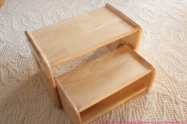 以前我家的廁所都放廉價塑膠凳,有幾次Robbie在如廁訓練的時候在踩->爬上馬桶的過程中一度不穩(幸好沒有摔倒)