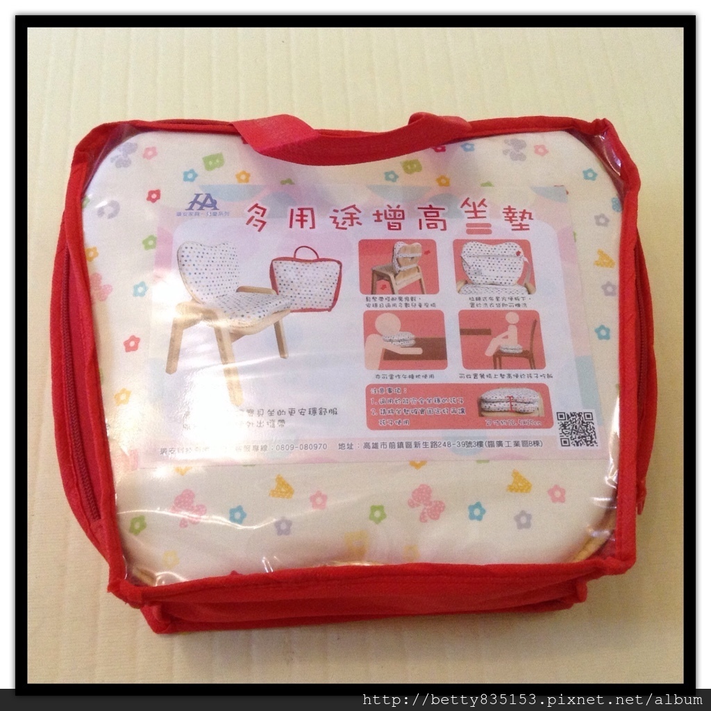上圖為「多用途增高坐墊」的正面 ( 一片較薄;另一片較厚 ),可愛小圖案加上色彩繽紛,讓人一看就愛不釋手呀 ! 而下圖則是它的背面,魔鬼氈 + 鬆緊帶的設計。