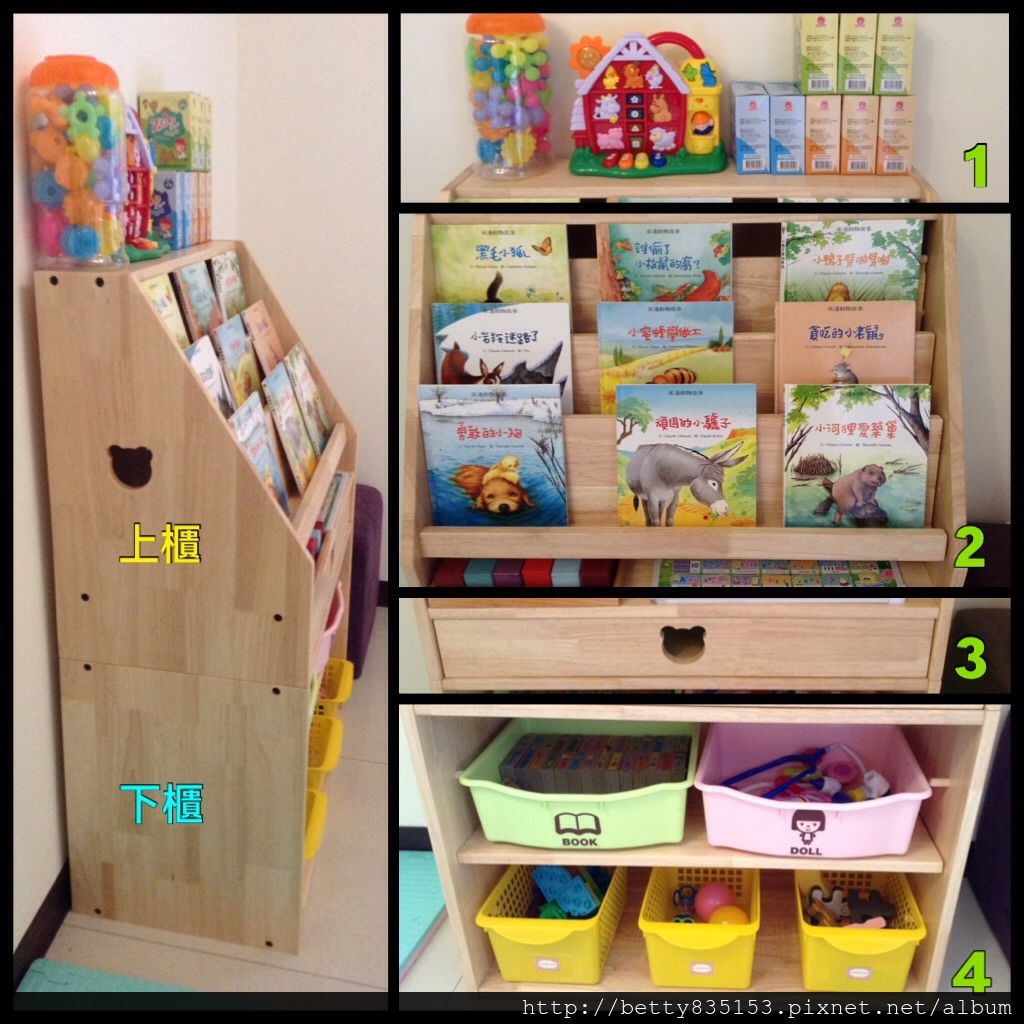 圖1 : 最頂部,可放置各式孩子用品 ( 充分利用收納空間 )。