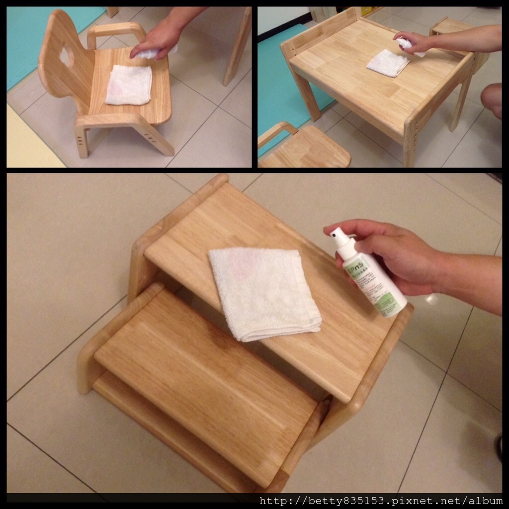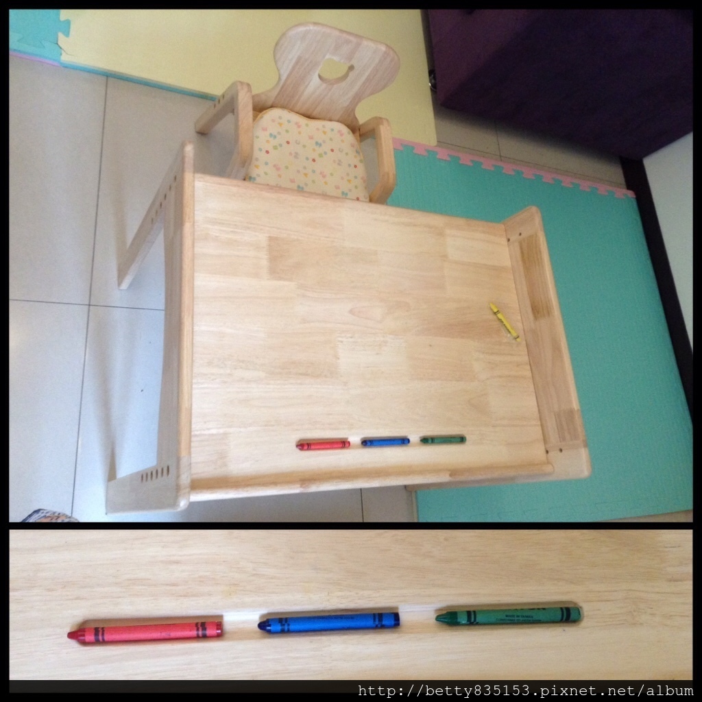 最貼心 : 不同部分使用不同水性器漆,例如,光滑的桌面以及需要止滑的腳凳,讓寶寶更安全。