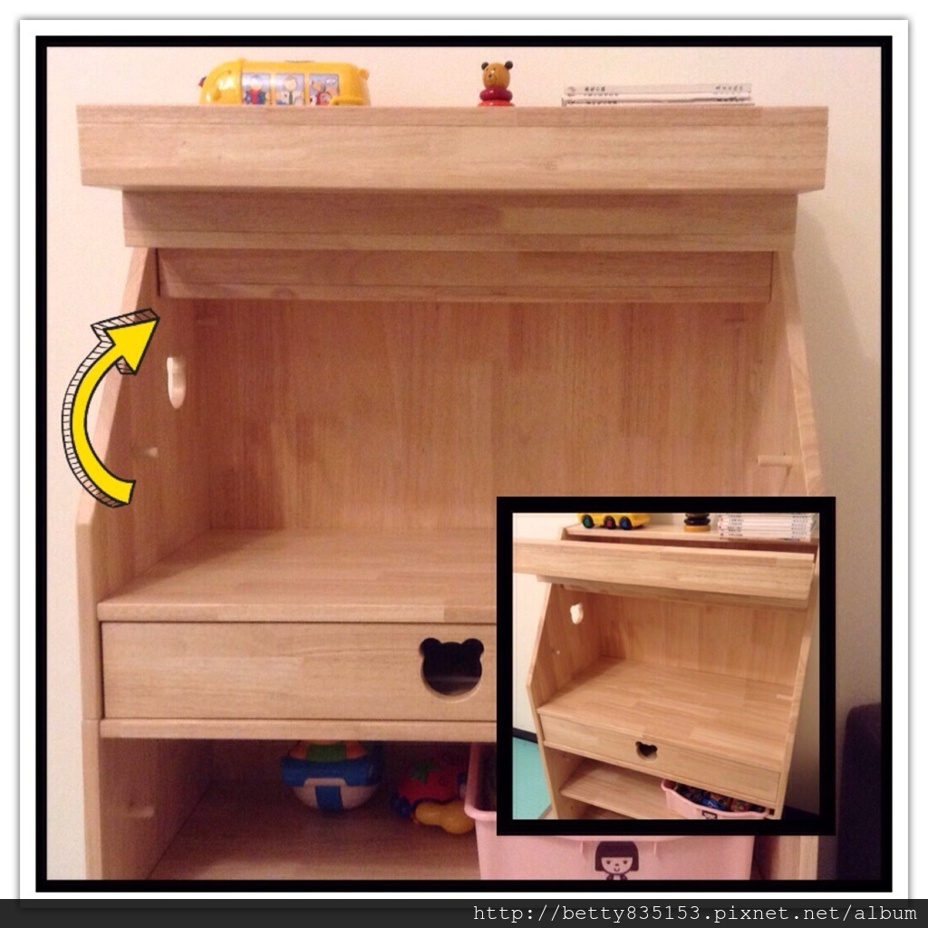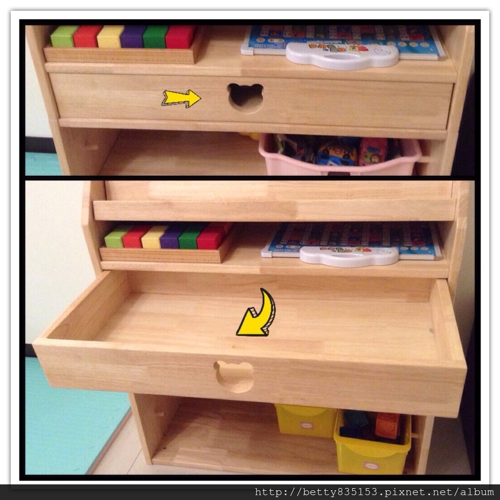 ☉ 專屬抽屜設計,讓寶貝學習收納、並可珍藏自己的小物品。抽屜有特殊設計,不會全部拉出掉落!!