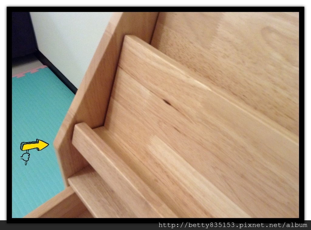 ☉ 安全考量,展示架放下來連大人的手都不怕被夾到,並且作了牢靠的卡榫固定,不怕移動掉落。