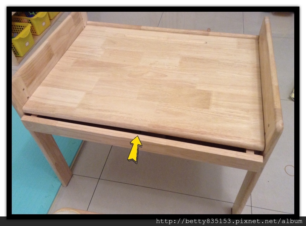 二段式可活動展示架,抬起後檯面可當桌子使用,孩子長大之後還能用很久 ( 牢靠的卡榫固定設計,不怕抬起的展示架移動掉落 )。